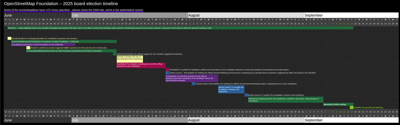 Foundation members voted to elect at least three new board members in September. There are seven seats on the board. The OSM wiki has more information.