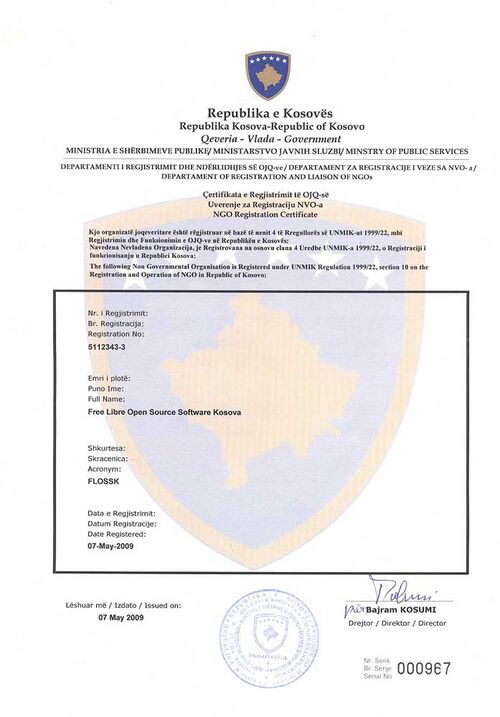 - FLOSSK is sponsor of Wikimedians of Albanian Language User Group.